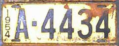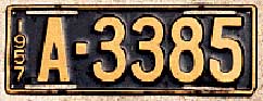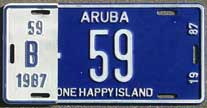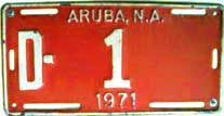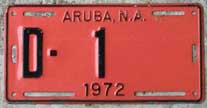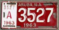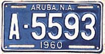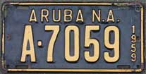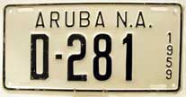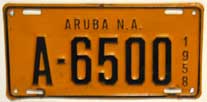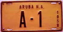 1958 | 1959 | car | A 1234 | Aruba, N.A. Fierens (1958) Government plates had a different color than the year color, normally black on white (until 1959?) |