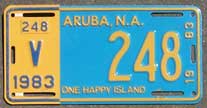1983 | 1986 | car | A 12345 | new dies (1984-1992) new slogan: one happy island in 1986 Aruba became independent from Neth. Antilles |