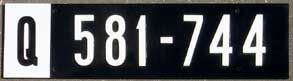 Apr 1925 | May 1955 | car | Q 123456 | Q on top for English cars NPCC (2nd) -Q 687612? Q in wh/bk? |