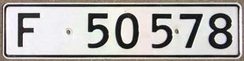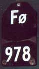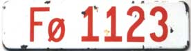 1977 | car | Fø 12345 | enamal first block Fø 5000 - 6999 2nd block Fø 50000 - 59999 1975 Fø 56799 trailers and tractors have no plates |