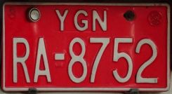 1948 Burma independent 1958 Burmese charters 1970 driving on the right car 1677 bus 2837, route 10 1947 A 1205 1948 B 7593 1949 C 5032 1958 D 2712 E 2510 owner provided plate 1961 F 1965/8 G 1968 H 1975 K 1985 L |