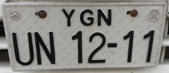 substitution program will get a new plate 360x165mm YGN = Yangôn (Rangoon) Europlate old series, no free import permit will keep the old number Francoplaque 2014 3H 2015 5I (i) 2016 3L 2018 9P/3Q 2019 5-9Q 2020 4R 2021 6-7R 2022 1-2S today 2023 3S-1234 |