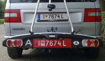 | 43 | ![]() ![]() ![]() ![]() | Nov 2002 | now | car | A 12 BCD | the new Euro version (520x120mm) Seger (2nd and Wien) ![]() new dies (38mm) ![]() old dies (42mm) here the Governor of Niederösterreich Kriechhammer (3rd) here the 'first' diplomatic 1 = Vatican Europlate | ||||