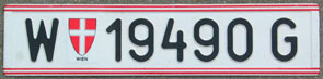 | 28 | ![]() ![]() ![]() ![]() ![]() ![]() | W 1234 AB | the first two are 2002 Euro versions (with slightly smaller dies) Seger (BE) extra combinations used in Wien (ending on:) BE = hearse (bestattung) EW = electricity works (E-werk) FW = fire brigade (feuerwehr) GT = big trucks (guetertransport) GW = gas works (gaswerk) KT = small trucks (kleintransport) Eric (GT, KT) Rope (EW, FW, GW) Â | |||||||